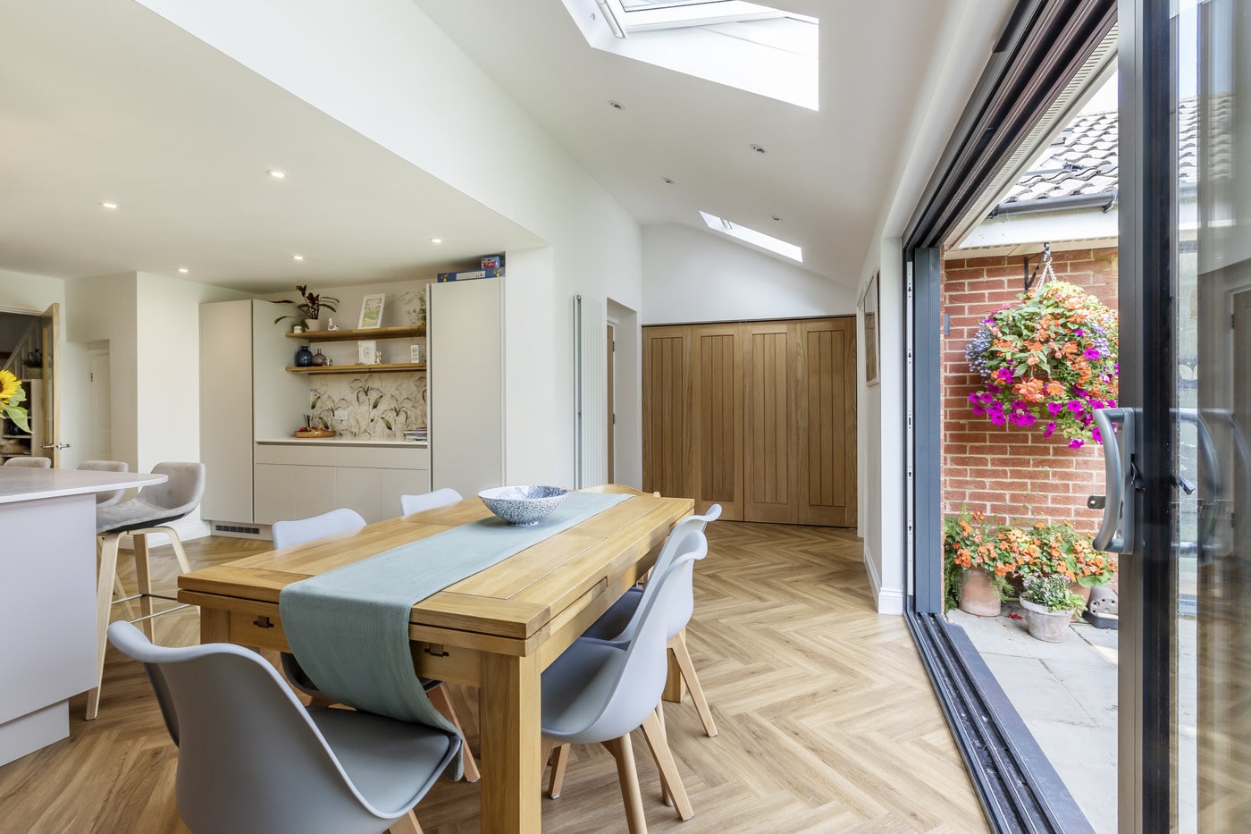 The modest extension and internal changes have made a dramatic impact, changing the way the house and garden can be enjoyed and resulting in a different way of life for the family. The small, confined cellular rooms at the back of the house have become a light-filled, airy space. The addition of the snug & garden room and retention of the lounge at the front of the house provide a variety of spaces, providing flexibility for the growing family in the way it can adapt with the evolving family needs over time.